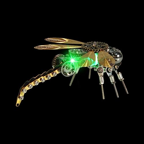 LED Color-Changing Steampunk Dragonfly 3D Metal Model, 260PCS DIY Building Kit for Adults, Unique Gift Idea and Creative Home Decor Projec