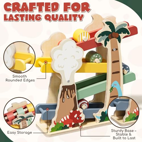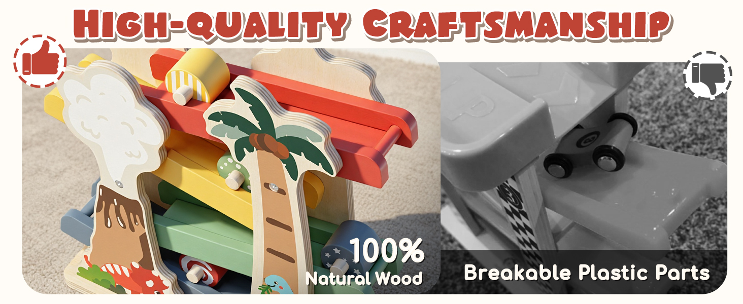 【Safe Play with Large Rolling Balls】Unlike other ramp toys with tiny cars, our upgraded version features large wooden rollers (over 3cm) — perfectly sized to prevent choking and safe for 1-year-old toddlers. Ideal for developing focus, balance, and fine motor skills.