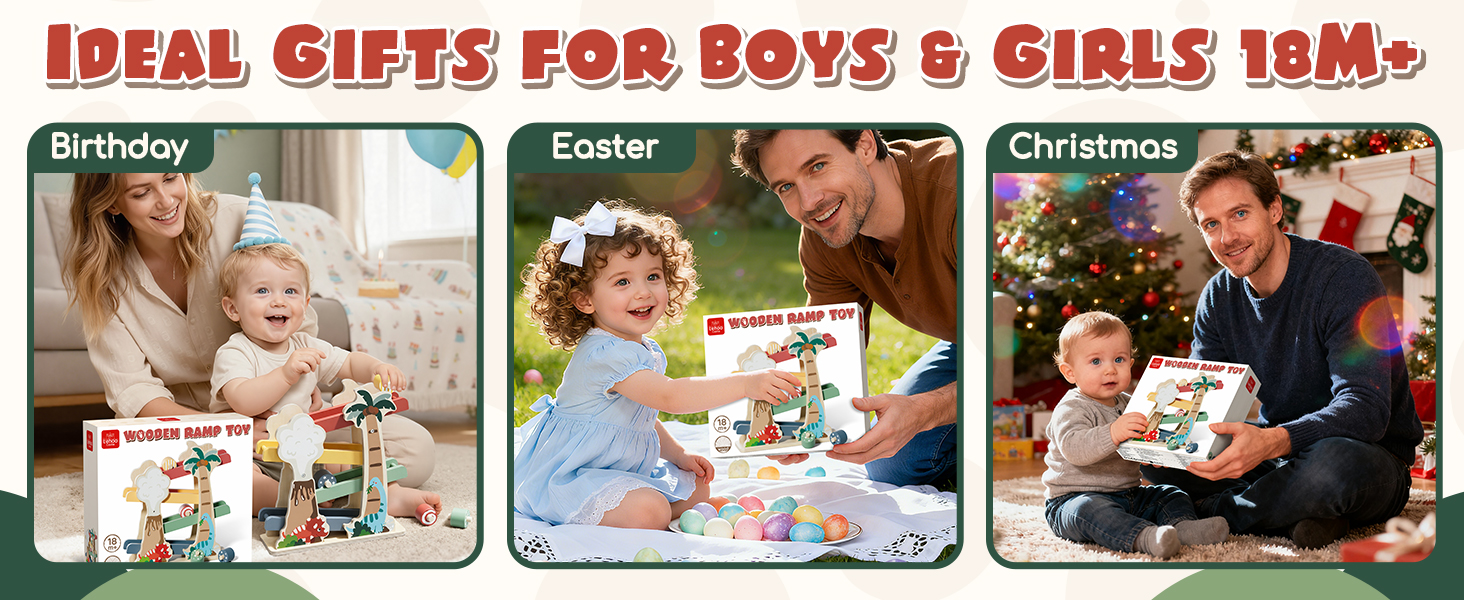 【Perfect Gift for Curious Toddlers】Beautifully presented in a sturdy gift box, this wooden dinosaur ramp toy makes a perfect present for birthdays, Christmas, or baby showers. Safe, educational, and fun — a thoughtful gift loved by both children and parents. If you have any questions, please contact us — we’re always happy to help.