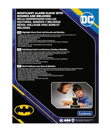 Alarm with adjustable volume and choice of Batman's inspired-themed alarms.