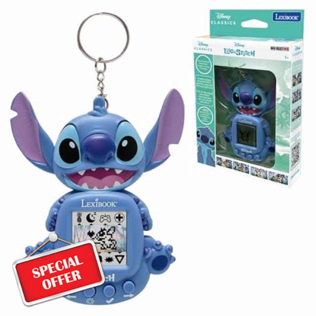 - STITCH CONSOLE – Your favourite Disney companion is waiting for you! Take care of Stitch by feeding him, playing with him and looking after his well-being for a never-ending educational and play experience. Thanks to its integrated key ring, you can take it with you wherever you go.