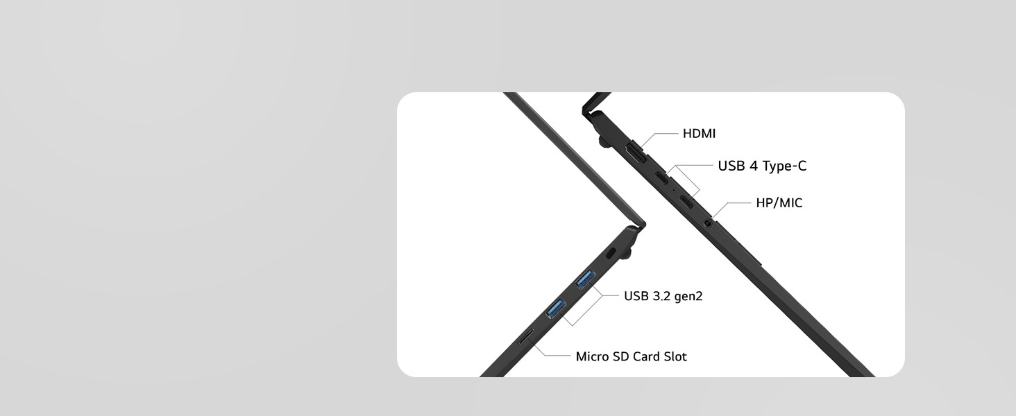 Connect with gram +view, high-speed storage, bigger monitors or cutting-edge devices by multi-ports.