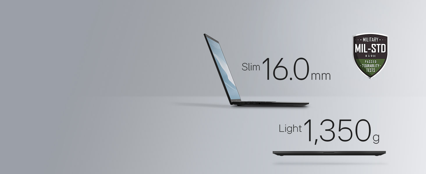 - Ultra-portable, ultra-durable – You’ll be surprised how our gram thrives under pressure. Its tough endurance is proven by rigorous military standard tests (MIL-STD 810H). Designed with finesse, to endure