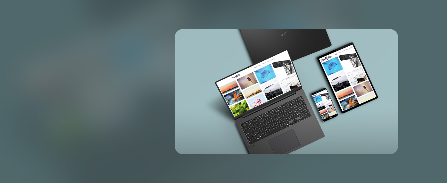 LG gram easily connects as many as 10 devices all at once, even iOS and Android. Share, collaborate, and create by turning your workspace into a concert of technology.