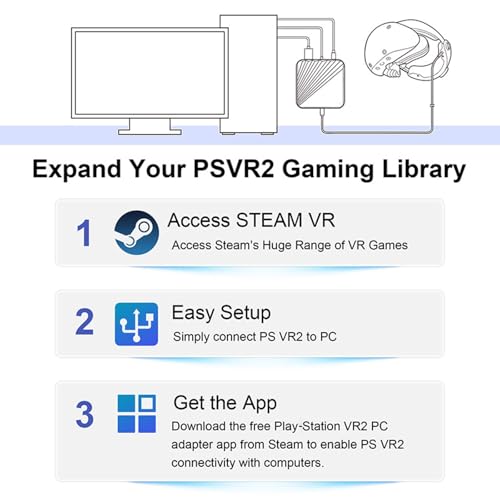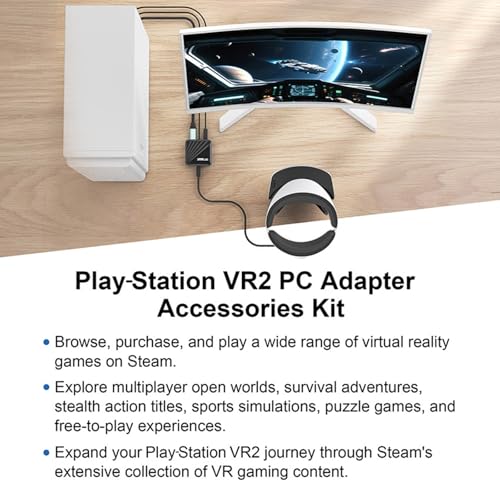 - 【Expand Your Gamming Library】Access a new realm of gaming by connecting your VR2 to your Wins PC with our adapter, browse, purchase, and play a wide range of virtual reality games on Steam, explore multiplayer open worlds, survival adventures, stealth action titles, sports simulations, puzzle games, and free-to-play experiences. Expand your VR2 journey through Steam's extensive collection of VR gaming content.