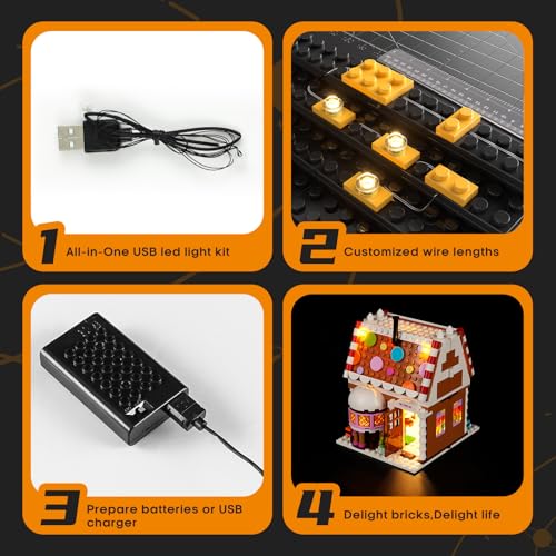 【ALL-IN-ONE DESIGN】 Easy installation with a pre-set wiring layout for Lego 40809 Festive Gingerbread House, featuring a plug-and-play setup with pre-routed channels and hassle-free removal — quick to light up your model or home decor.(Model Not Included)