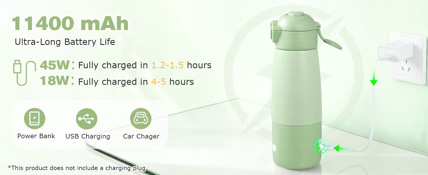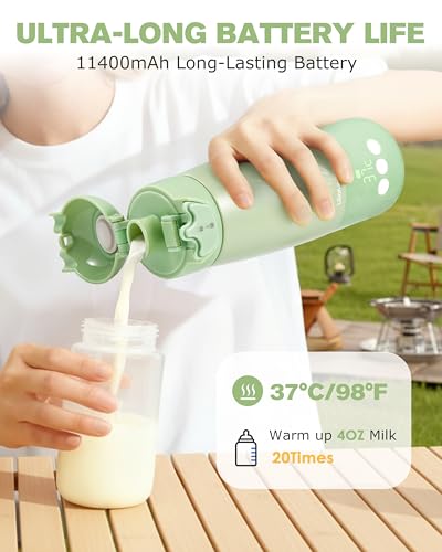 - 11400mAh Battery King (20 Heats/Charge),: This portable bottle warmer for Travel features a built-in 11400mAh long-lasting battery, capable of heating 4 oz of milk up to 20 times on a single charge.One charge lasts for multiple feedings, so you can go all day without worry.Perfect for travel, outings, or late-night feedings.