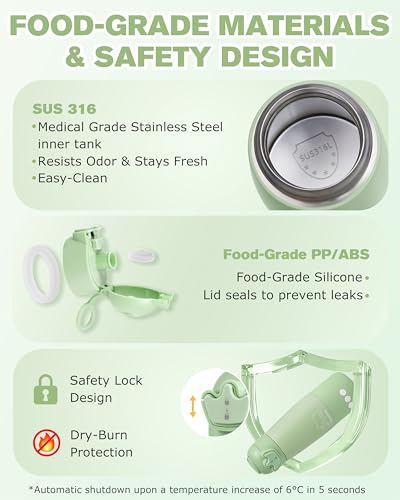 - Dual Safety Guardians:Dry-boil protection and safety lock to prevent accidental opening. Auto power-off when water runs out + dry-boil protection. The cup lid features a safety lock design to prevent accidental spills, making it ideal for households with young children.Lilian&Gema Portable Bottle Warmer—Peace of mind with every use.