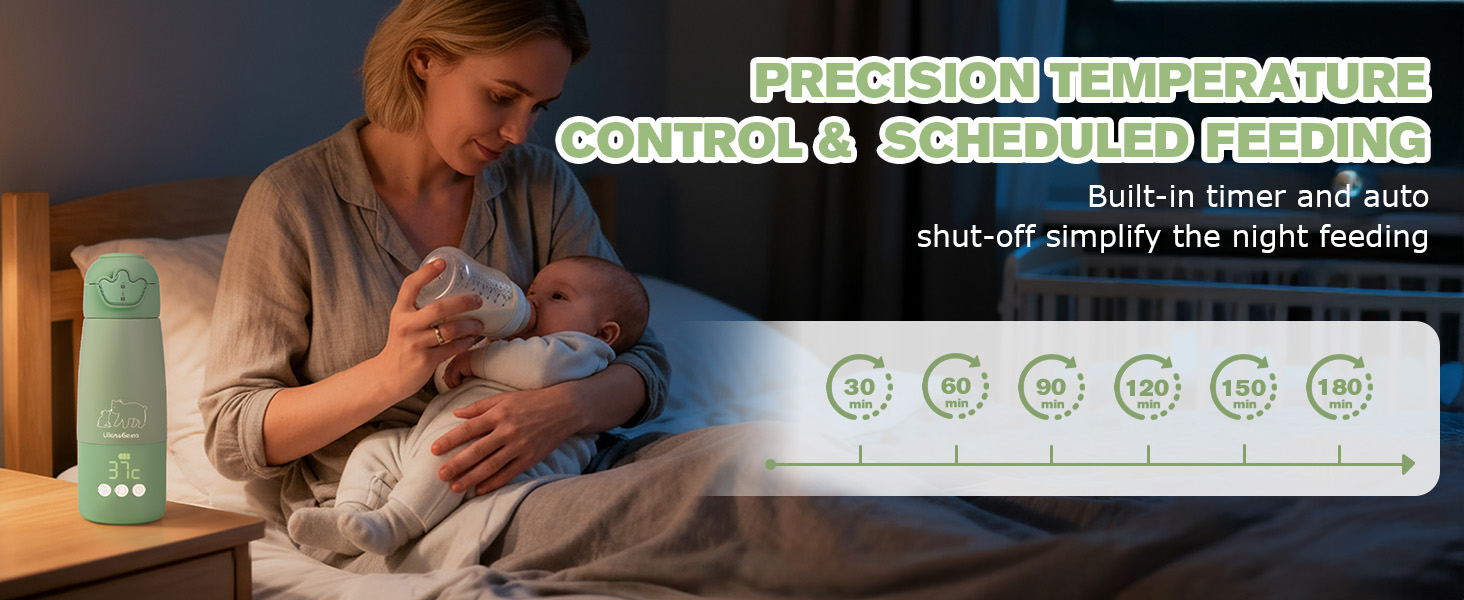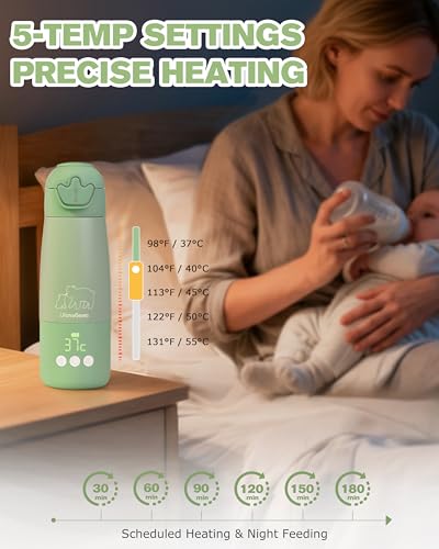 - 5-Temp Precision Control &Scheduled Heating:Gentle on your baby's delicate digestive system. This breast milk warmer portable offers five temperature settings: 98°F/104°F/113°F/122°F/131°F. It perfectly warms breast milk, formula, or drinking water, ensuring your baby's nutritional intake and comfort year-round.Supports timed heating reservations, ensuring milk is at the perfect temperature when your baby wakes up.