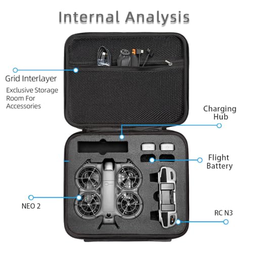 LiLiTok Hard Case for DJI NEO 2, Protective Travel Case, Waterproof, Shockproof, Hard Case for DJI Neo2 Fly More Combo, RC-N3 Remote Control, Intelligent Flight Battery and Charging Statio