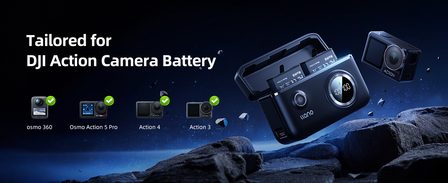 - Excellent Compatibility: llano camera battery charger set specifically designed for DJI Osmo 360, Action 5 Pro, Action 4 and 3 Action Camera.