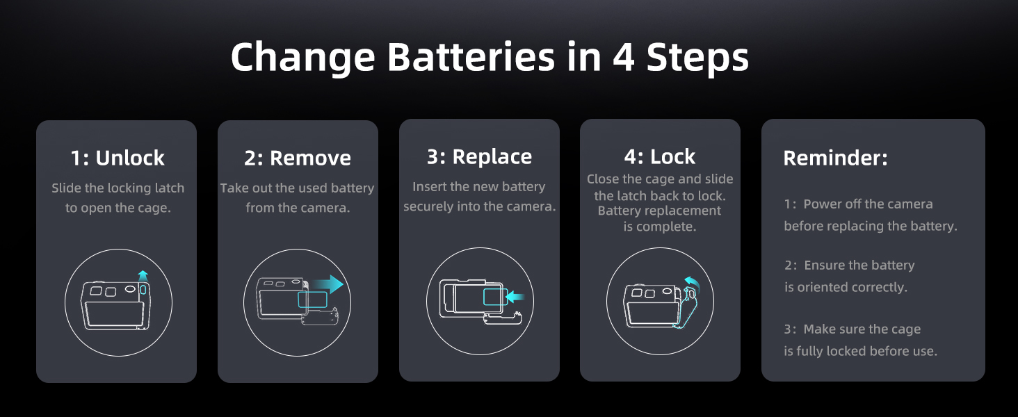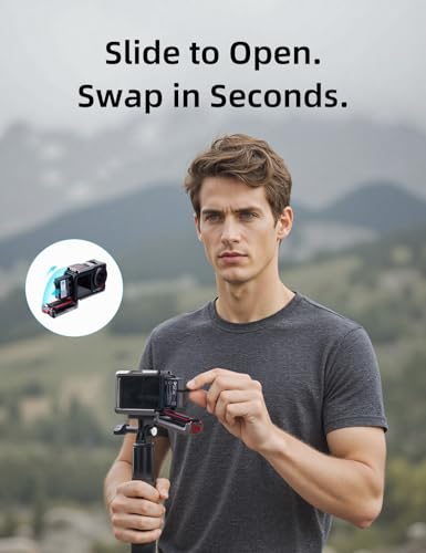 Quick-Release Design for Battery & SD Card: Designed with a sliding lock mechanism, you can easily open the side door to replace the battery or SD card in seconds—no need to remove the cage. Fast, secure, and efficient, keeping you ready for every moment of action.