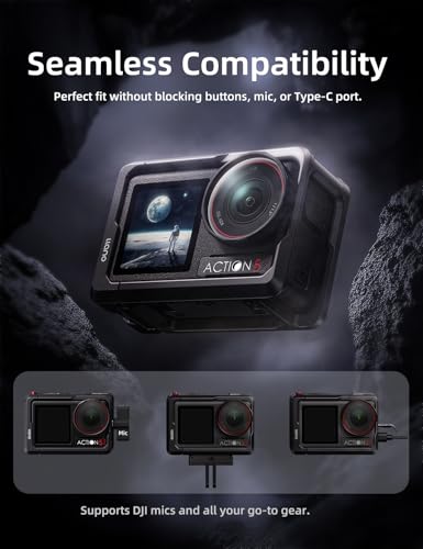Tailor-Made for DJI Osmo Action 6/5 Pro / 4 / 3:Precisely engineered 1:1 cage for DJI Osmo Action 5 Pro / Action 4 / Action 3 ensures a perfect fit without blocking buttons, microphone, or Type-C ports. Compatible with DJI Mic and original magnetic base for effortless mounting.