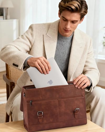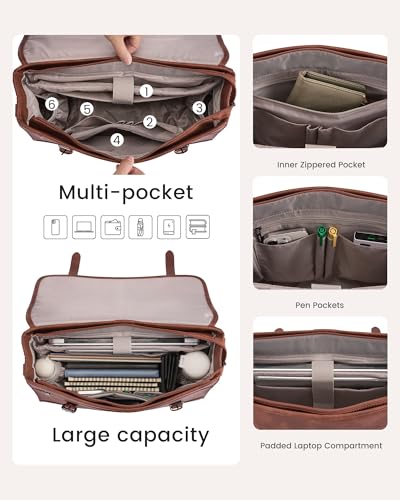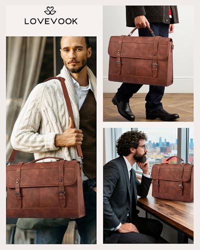 LOVEVOOK Messenger Bag Laptop Bag, 15.6 Inch Leather Vintage