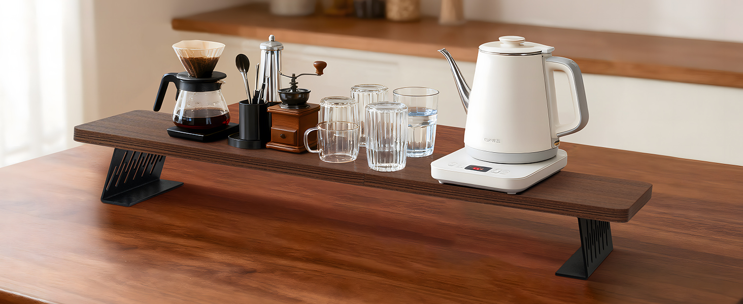 Eco-Friendly & Stable: Crafted from 18 mm industrial-grade MDF, this wooden monitor stands for desks adds a warm, natural touch to your workspace while being eco-friendly and durable. The reinforced steel leg frame ensures stability, perfectly supporting your PC, computer screen, or desktop monitor. Each desk leg features a non-slip pad to protect surfaces from scratches and keep your setup steady.