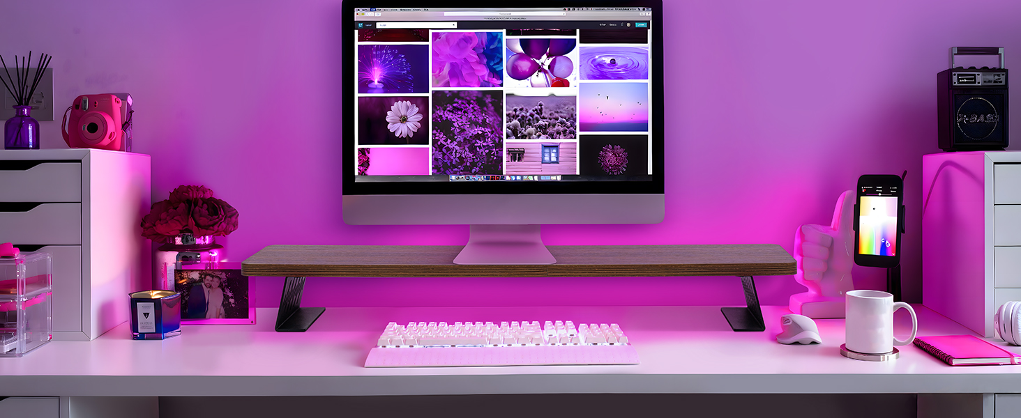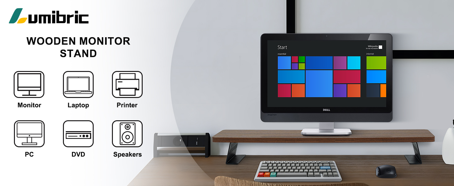Space-Saving Dual Monitor Riser: This wooden desk monitor stand is designed to hold two screens, helping you maximize your work area and keep your desktop organized. It’s an ideal choice for creating an efficient and tidy workspace.