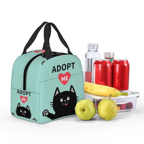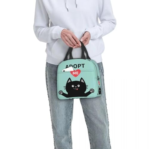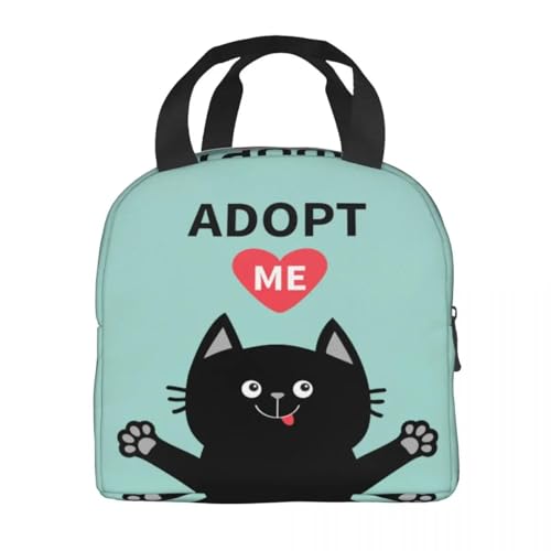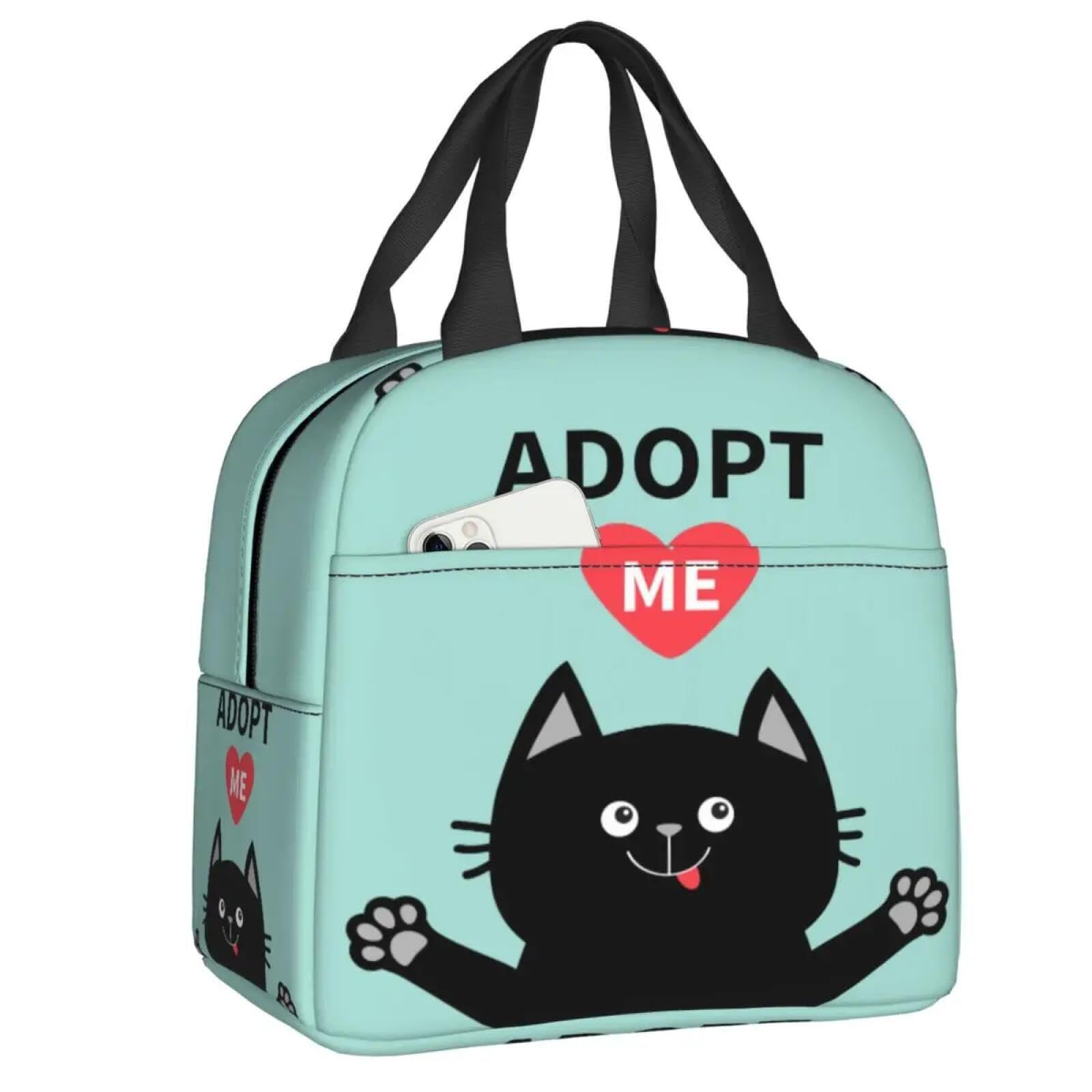 Lunch Bags Custom Cute Adopt Me Black Thermal Insulated Women Kitten Container for Outdoor Picnic Storage Food Box Halloween and Christmas gifts