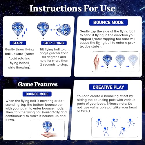 Perfect for Kids & Beginners: As an easy-to-fly mini drone, this flying orb is ideal for children and beginners aged 6+. No remote or complicated controls needed—every touch delivers instant response. It’s a fun, interactive toy that enhances motor skills, coordination, and creativity. A great gift for boys and girls aged 6-12, teens, and even adults.