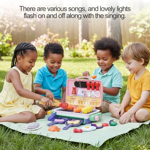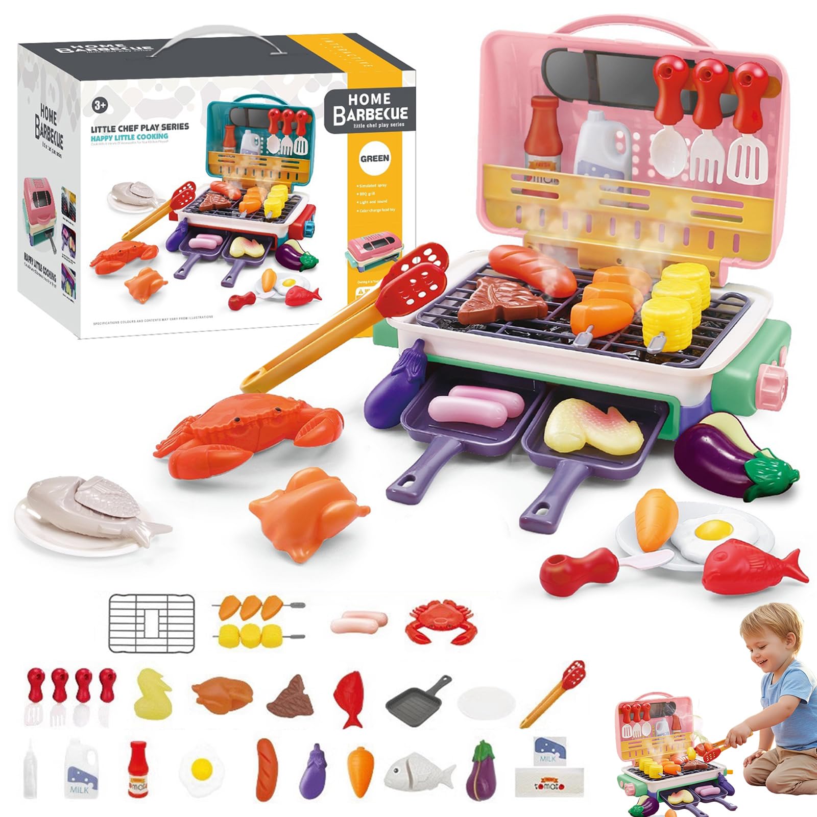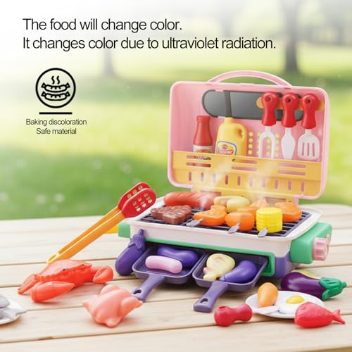 【MAGICAL COLOUR-CHANGING GRILL】- watch sausages and veggies transform from "raw" to perfectly "grilled" with a simple press! creates brilliant BBQ magic that delights little chefs during pretend cooking sessions