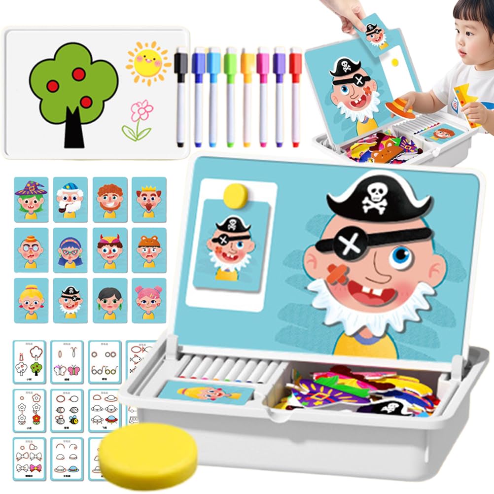 Magnetic Dress Up Puzzle,Magnetic Educational Facial Expression Learning Puzzle For Children,Magnetic Faces Travel Game Double Side Preschool Toy For Kids (1SET)