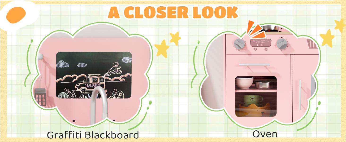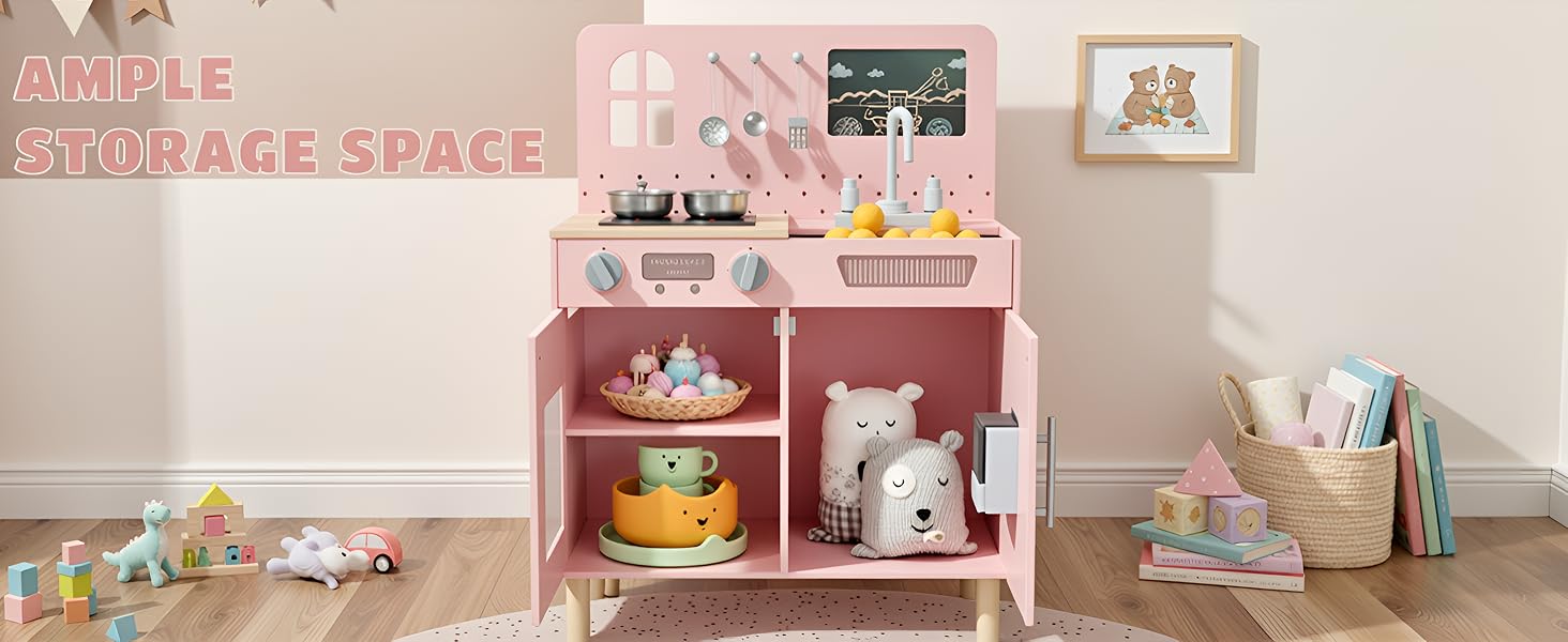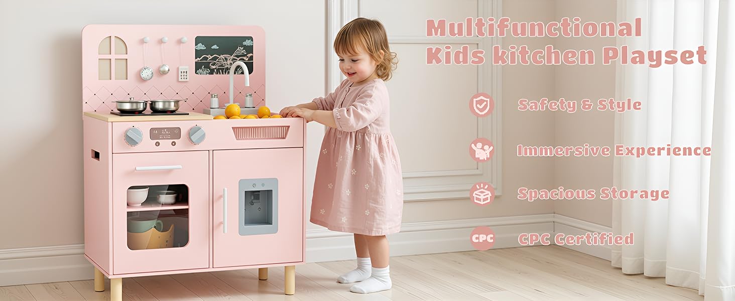 MATERIAL: Kids Play kitchen is crafted from sturdy construction with smooth edges and stable metal-reinforced components. Designed for lasting durability, it offers a environment for kids to enjoy imaginative culinary play