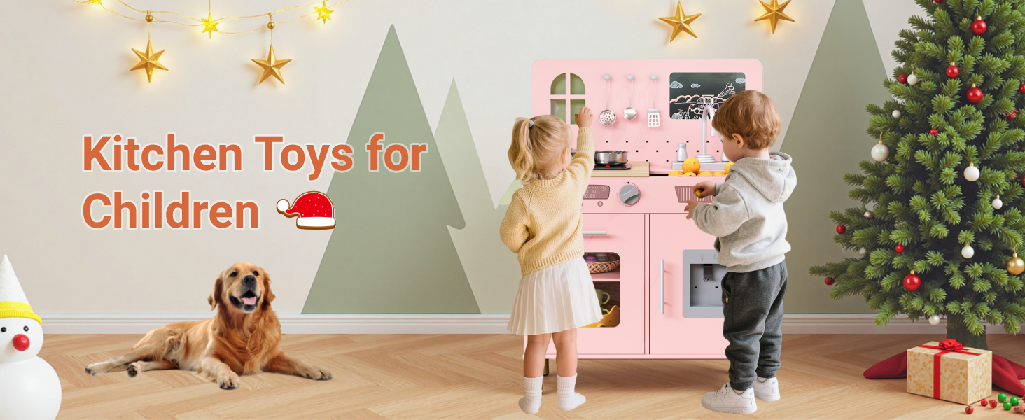Co-play: Toddler play kitchen features a countertop with two workbenches, one for cooking and the other for cleaning, allowing children to engage in realistic kitchen role-playing. This helps children improve the flexibility of their hands and learn the basics of cooking through games.