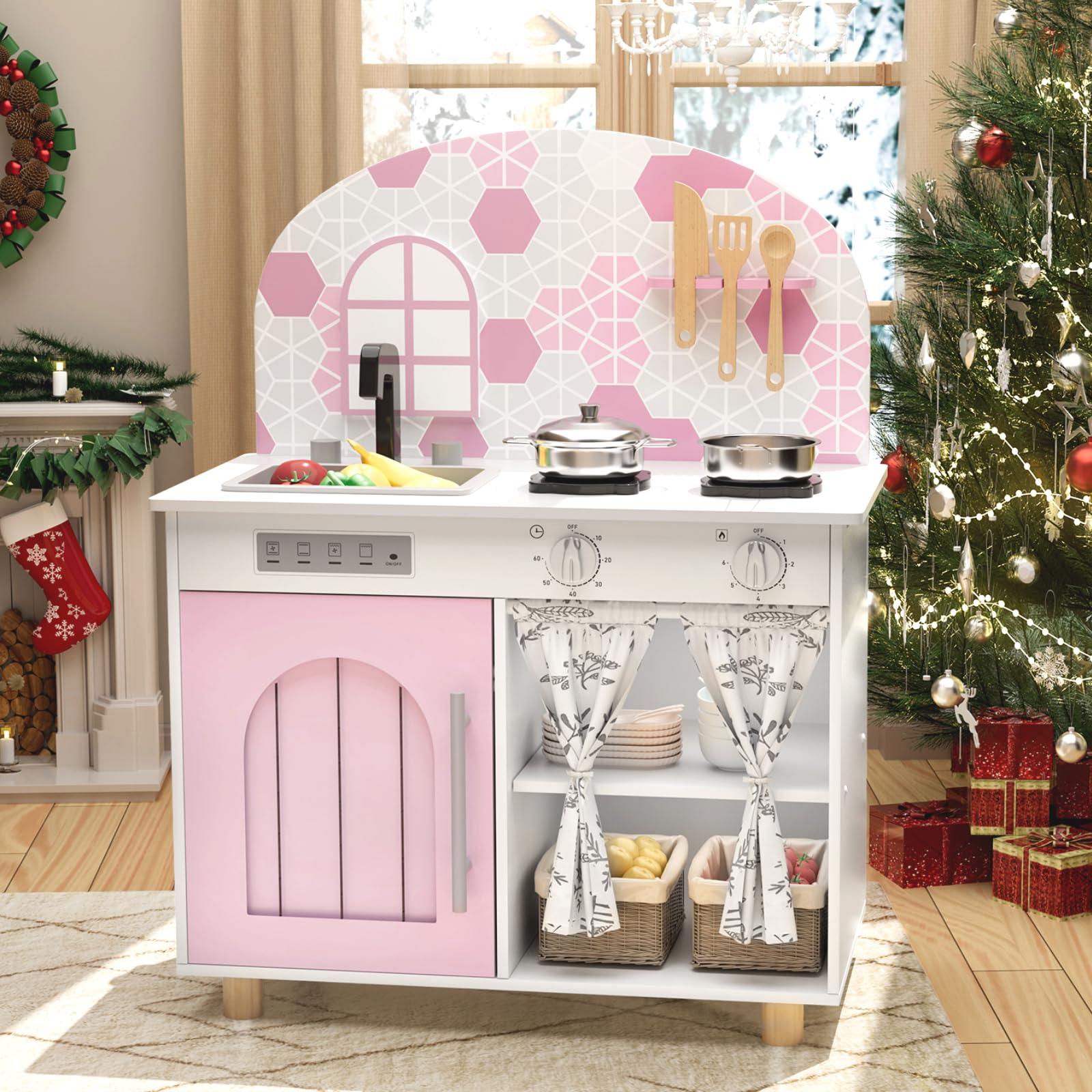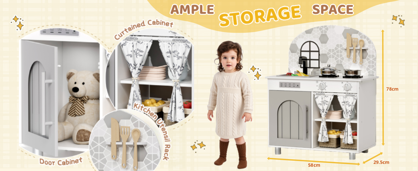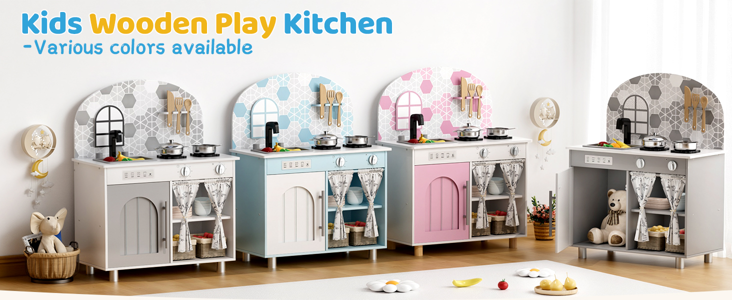 MATERIAL: Kids Play kitchen is crafted from sturdy construction with smooth edges and stable metal-reinforced components. Designed for lasting durability, it offers a environment for kids to enjoy imaginative culinary play