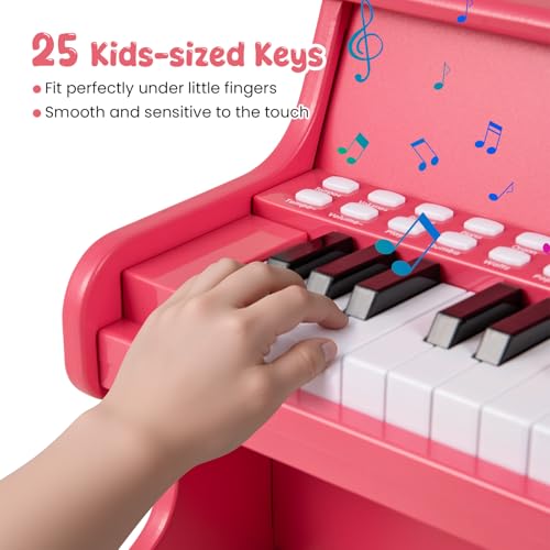25 Key Kids Piano: This toddler piano keyboard has 25 kids-sized keys. These keys boast a smooth surface, responsive touch, and a perfectly tailored width that fits small fingers comfortably—letting little ones easily play cheerful melodies. The superior sound quality ensures each note comes through clear and pleasant.
