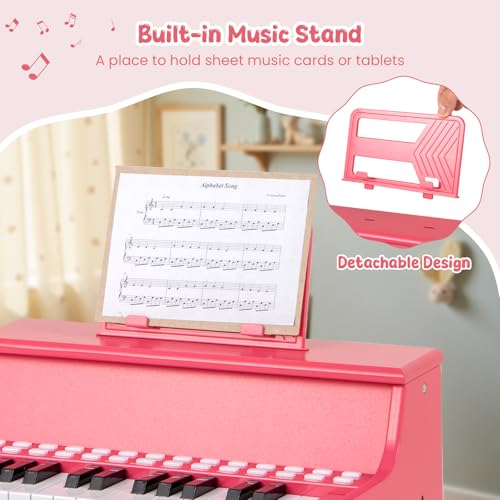 Thoughtful Details: Our kids digital piano prioritizes safety for active little learners, featuring anti-slip foot pads that keep the instrument stable during play, rounded corners to prevent bumps and scrapes. Besides, the built-in and detachable music stand is ideal for holding sheet music, song cards, or even a tablet.