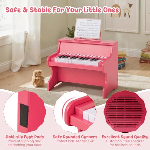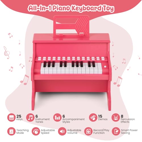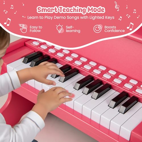 Maxmass 25 Key Kids Piano Keyboard, Toddler Electronic Keyboard with Detachable Music Stand, Lighted Keys, Record, Educational Toy Instrument Music Piano for 3+ Years Old (Pink, 38x24x29cm)