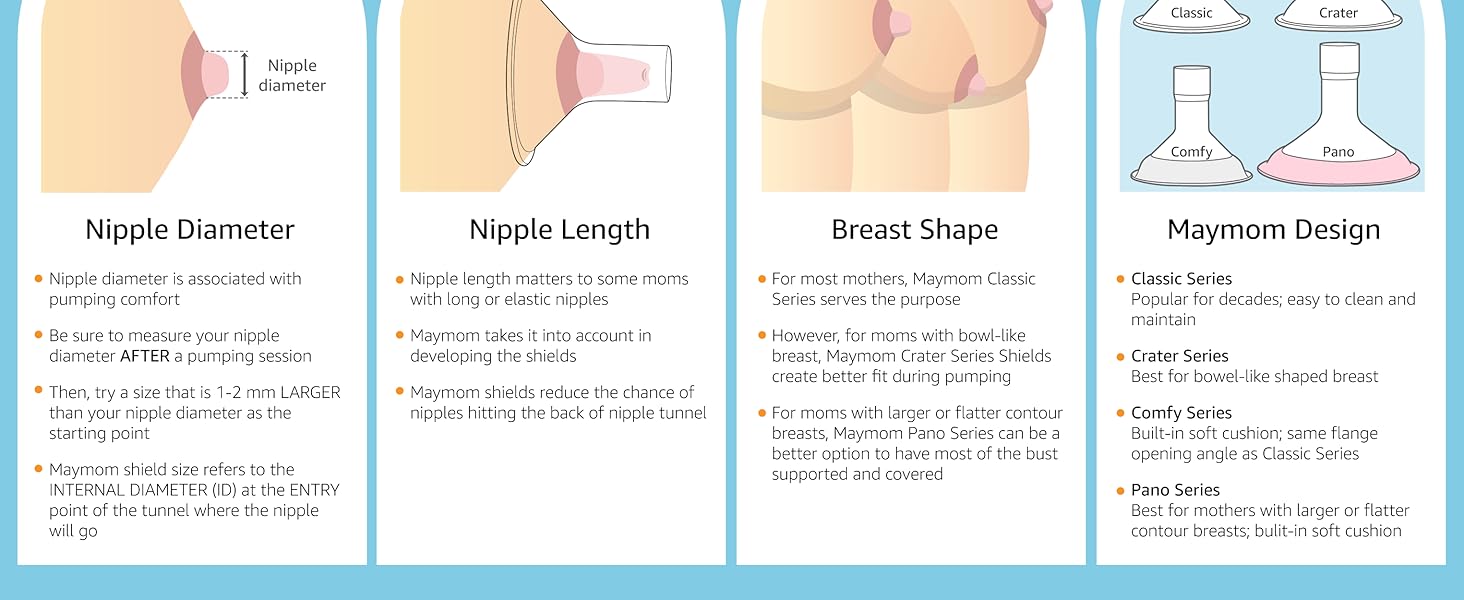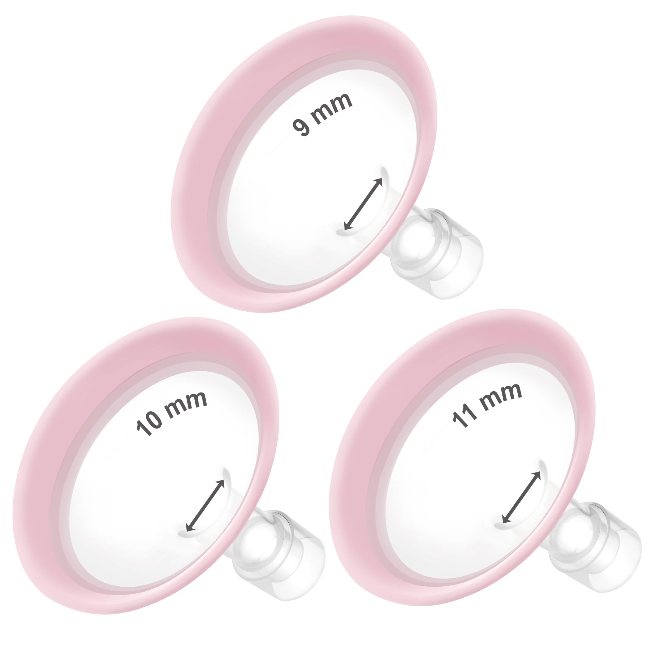 Maymom MyFit Pano Shields – 9mm, 10mm, 11mm (1 Shield per Size). Compatible with Medela Pump in Style with MaxFlow, Pump in style, Lactina, Symphony, Swing, Mini Electric, FreeStyle, Swing Maxi, Sonata, Freestyle Flex and Harmony. NOTE: connectors are not included in this listing. Also compatible with Lansinoh SignaturePro SmartPump Manual Pump, replace Lansinoh Pump Parts, Lansinoh Flanges.