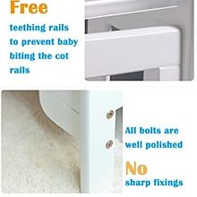 This cot (126*66 cm) is made from solid pine, featuring height adjustable base positions. Suitable from Birth to 5 years old.