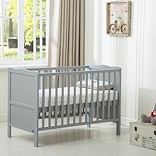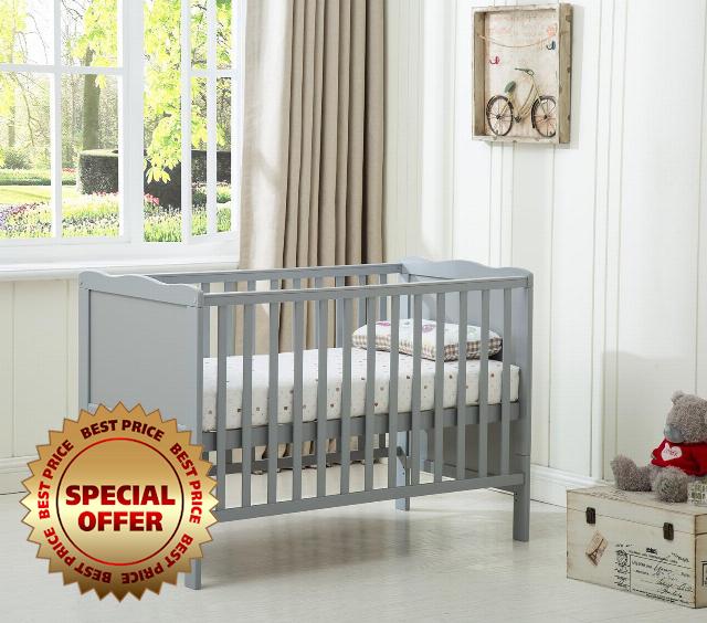 mcc direct Cot Bed Wooden Baby Cot Toddler Bed Premier Aloe Vera Water Repellent Mattress Grey – Orlando