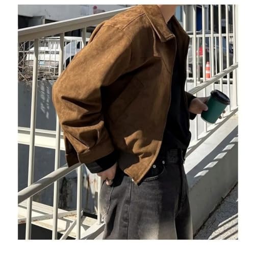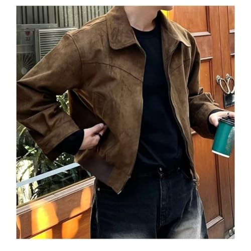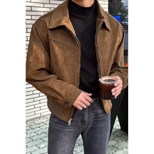 Men's Faux Suede Collared Jacket,Mens Jackets Casual Stylish Bomb Jacket,Fashion Lapel Zipper Closure Solid Colo