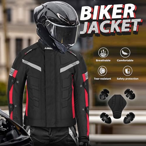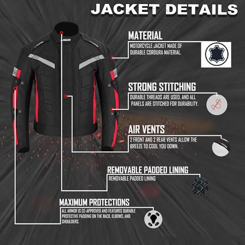 Men’s Motorcycle Jacket 4 Season Cordura Textile Biker Jacket Waterproof Windproof with CE Armor, Air Vents & Removable Thermal Line
