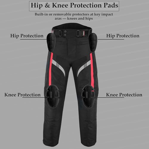 Men’s Motorcycle Trousers Cordura 600D Waterproof – CE Approved EN 17092-4:2020, Knee & Hip Armour, Removable Liner, All Season, Anti-Skid, Zip to Jacke