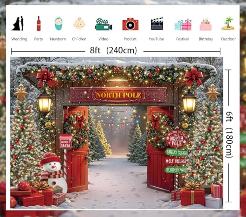 - 【Features】: Christmas north pole photography background, Vinyl,High-resolution digital print with eye-catching details and colorful. Wide enough for selfie or video, Perfect reflectivity