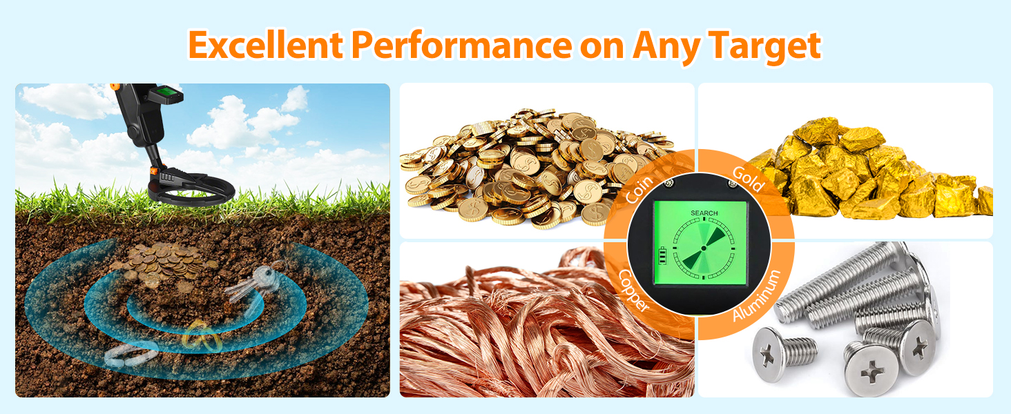 - FIND BURIED TREASURE : This metal detector kit is the perfect tool for a treasure-hunting expedition! Weighs only 1.32lb. Swipe the search coil of the metal detector from side to side while walking slowly and keep the lightweight coil parallel to the ground and you will discover coins penny or other unexpected surprise underground up to 10 cm/4”.