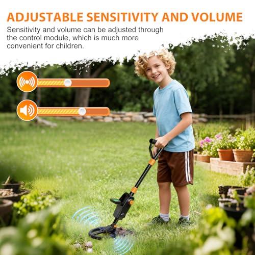 - HIGH ACCURATE SENSITIVITY: The sensitivity of the kid's metal detector can be controlled through the control buttons, allowing for precise detection of objects buried up to 10 cm/4" underground. It has accurate sensitivity, and you can use it to search for gold and silver jewelry, coins, and other metals like aluminum rings, small aluminum products, and gold, making it suitable for detection in various environments.
