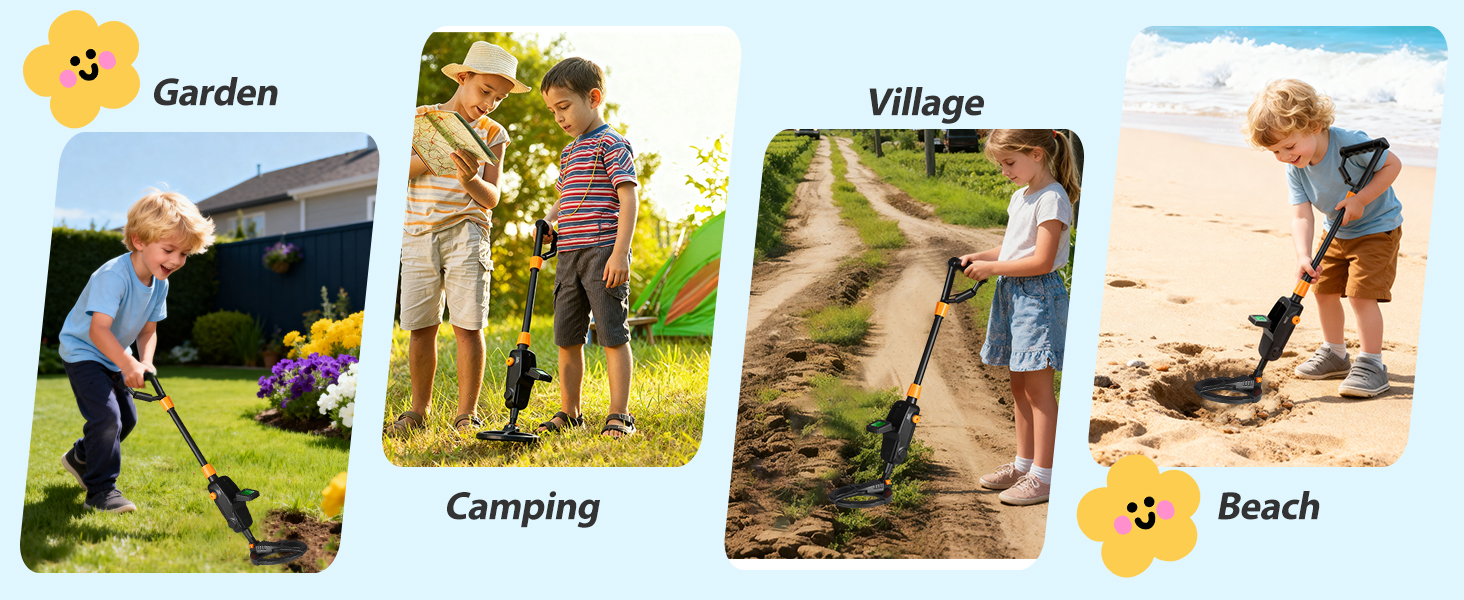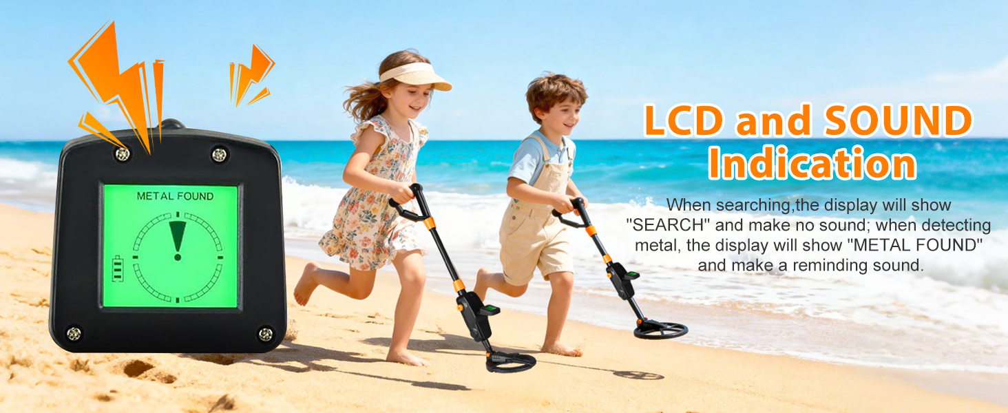 - LCD AND SOUND INDICATION: Our metal detectors for kids has a sound prompt and LED display indication. When metal is detected, "METAL FOUND" will be displayed on the LCD screen and a sound will be emitted. The closer the coil is to the target metal, the stronger the signal on the instrument and the more the needle moves to the right. Easy to use, simple operation makes it easy for kids to start treasure hunting!