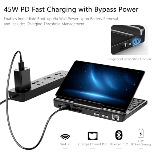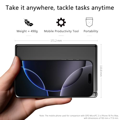 - Ultra-Portable & Functional Design: Weighing just 490 grams (~1.08 lbs) and built with a 7-inch, 1920×1080 Full HD IPS touchscreen (500 nits brightness, 10-point capacitive touch), this pocket-sized powerhouse is perfect for mobile use. The screen flips 180° for easy sharing or use as a compact tablet.