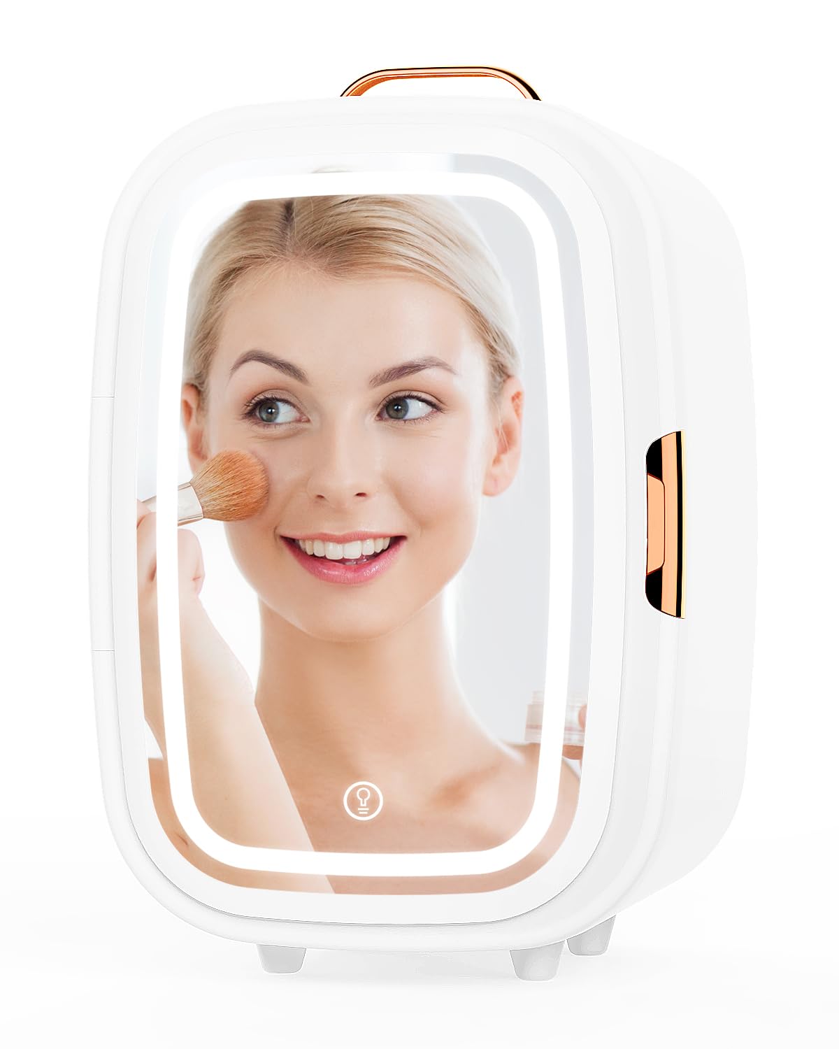 Mini Fridge 15L Cans Cooler and Warmer Portable Mini Fridge for Bedrooms with 3 LED Light Mirror, Beauty Fridges AC+12V DC Small Fridges for Skincare, Cosmetics, Car, Office, Drinks (White) [Energy Class E]