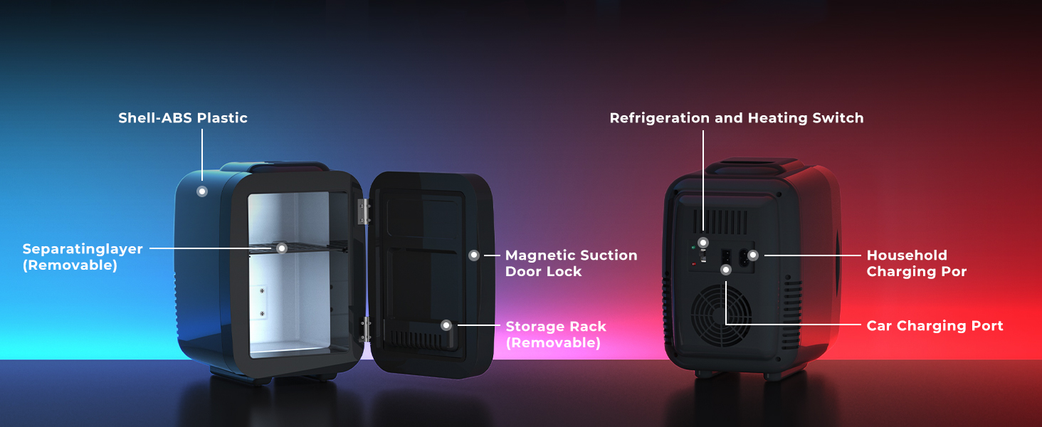 DUAL POWER & TOTAL PORTABILITY: Enjoy true freedom with this portable fridge. Equipped with both a standard AC home plug (220V-240V) and a 12V DC car adapter, it's ready to use anywhere. Set it up as a table top fridge in your bedroom or office, then grab the handle and take it on road trips, to the dorm, or in your campervan