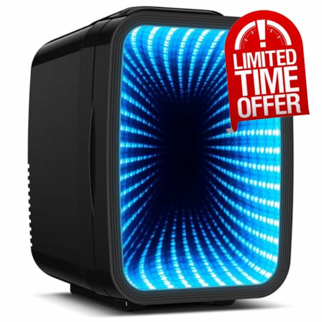 6 Color & 7 Modes ATMOSPHERE: Elevate your space with vibrant, dynamic lighting on this table top fridge. With 7 LED modes – red, blue, green, yellow, cyan, purple, and the flashing marquee mode. A single touch on the sleek LED mirror panel cycles through the colours. The seventh tap activates the automatic colour cycle. When the LED lights are turned off, the refrigerator door is a mirror, very practical and suitable for gamers or anyone who wants to add fun to their space