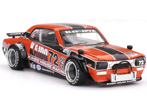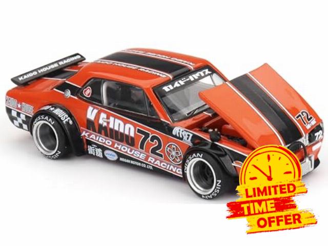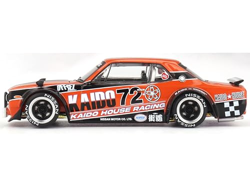 Brand new 1/64 scale diecast car model of Skyline 2000GT-R (KPGC10) RHD (Right Hand Drive) #72 “Kaido Racing V1” Orange with Black Stripes and Graphics (Designed by Jun Imai) “Kaido House” Special die cast model car by Mini GT KHMG195