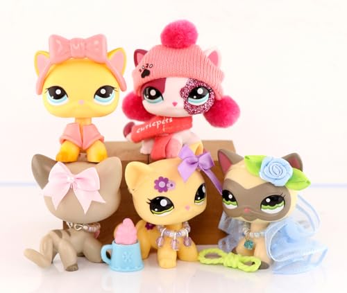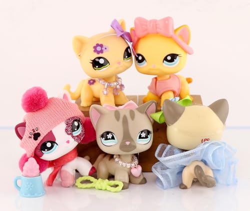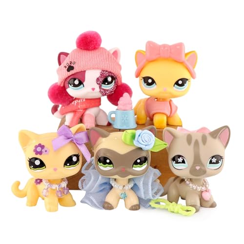 Mini Pet Shop 5PCS Shorthair Cat Set,#339#468#1116#1962#2291 Little Pets with DIY Decor Accessories,Bobble Head Cartoon Animal Figurnies