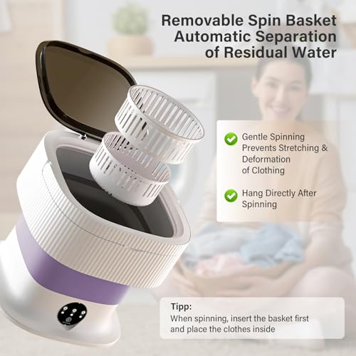 【Spin Basket for Easy Drying】No basket needed during wash mode – only install the spin basket during spin-dry mode to remove excess water from clothes efficiently. Saves effort compared to hand wringing or using a separate spin dryer
