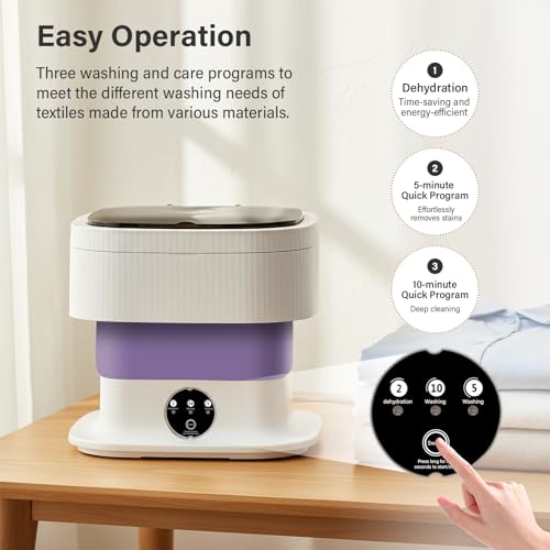【One-Touch Wash Modes for Versatility】Choose from 3, 5, or 10-minute cycles with the intuitive touchscreen panel. Whether you need a quick rinse or a deep clean, this foldable washer adapts to your needs, offering convenience with just one button