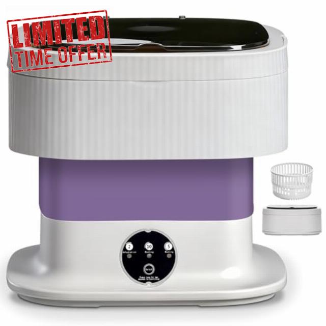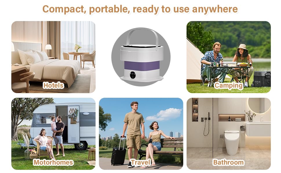 【Ultra-Portable & Foldable Design】This mini portable washing machine weighs only 1.8kg and folds down in seconds, making it ideal for camping, dorms, and compact apartments. Easily store it under a bed, inside a drawer, or carry it on your next trip