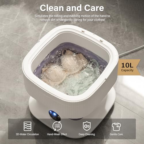 【Compact but Powerful Cleaning】Despite its small size, the mini washing machine simulates hand washing through a 360° rotating turbine, delivering gentle yet deep cleaning for underwear, socks, and baby garments